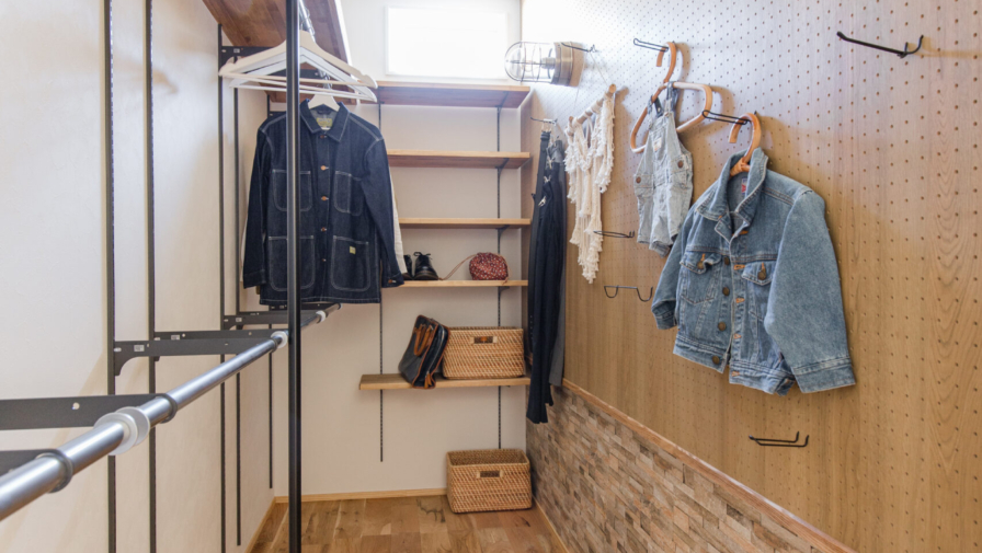 低い位置にハンガーパイプを取り付けることで、子どもたちは自分で服を選んだり、小さいころからお手伝いがしやすくなります。
