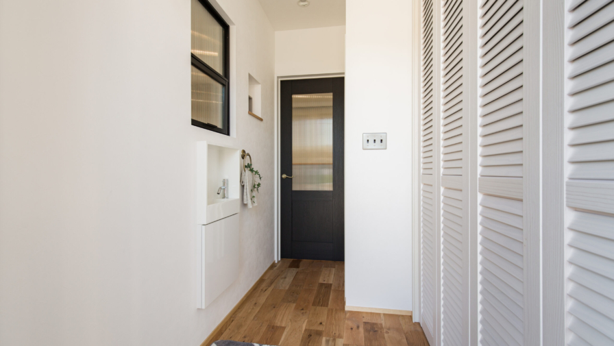 ランドリールームのすぐ横にファミリークロークをつくることで「洗う→干す→たたむ→しまう」この4つの動作が1階だけで完結し、家中歩き回ることのない理想の家事動線が生まれます。