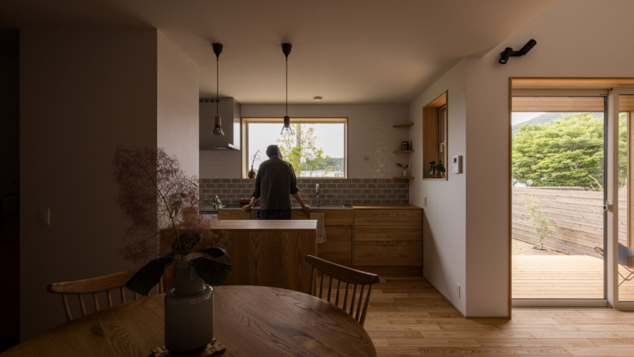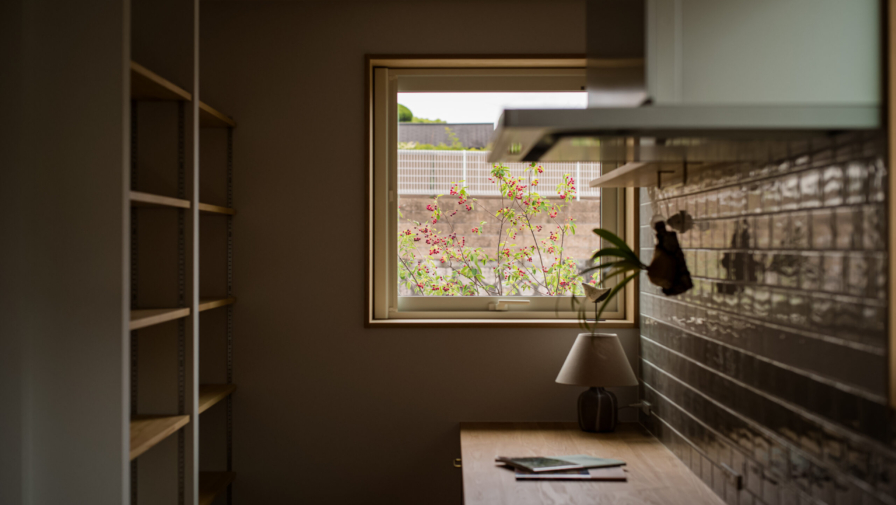 料理作りが趣味のご主人に合わせた少し高めのカウンターキッチンを作りました。SNSで料理動画も配信されるようなので、自然光がたくさん入る明るいキッチンにしました。壁にはご家族が迷いに迷って決められたお気に入りのタイルが貼られていて素敵な空間になりました。家庭菜園で採れた新鮮な野菜や果物がが食卓に並ぶのが楽しみです!